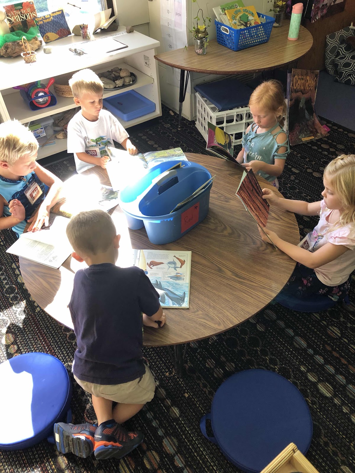 In the beginning we focus on teaching habits. These include : gentle hands, quiet voices, eyes on your book and stay in your spot. These are some excited learners!!